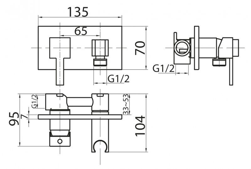 Смеситель для душа и гигиенического душа со штуцером с держателем, хром Cezares CZR-DA6-01