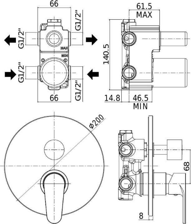 Смеситель встраиваемый для душа на 2 выхода с накладкой латунной диам.200mm, девиатор-картридж на 2 положения+1 комбо положение, ХромСмеситель для душа Paffoni Green GR018CR (с внутренней частью) предназначен для душа. Своим модернистским дизайном и колористикой он внесет в интерьер помещения особое настроение, подчеркнув его своеобразие. Он выполнен из надежного материала латунь, который не подвержен коррозии, а потому прослужит без ремонтов. Модель является идеальным примером соотношения цена/качество. Управление в смесителе предусмотрено однорычажное, что порадует любителей такого типа смесителей. Высокую жизнеспособность и основательность смесителю гарантирует керамический картридж, отличительной чертой которого является беспроигрышная конструкция - залог безупречной работы в течение продолжительного времени. Не зря гарантия на смеситель – 5 лет, в течение которого производитель Paffoni заверяет в его бесперебойной работе. Форма излива в смесителе - нет, а тип - нет. При покупке учтите, что подводка у смесителя жесткая, что необходимо знать для его подключения.