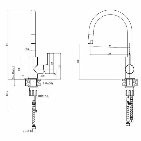 Высота смесителя:36