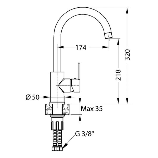 • Высота смесителя: