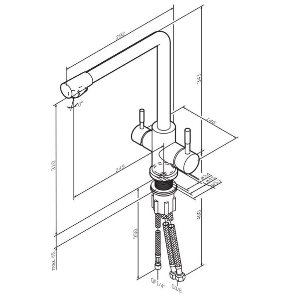 • Высота смесителя: