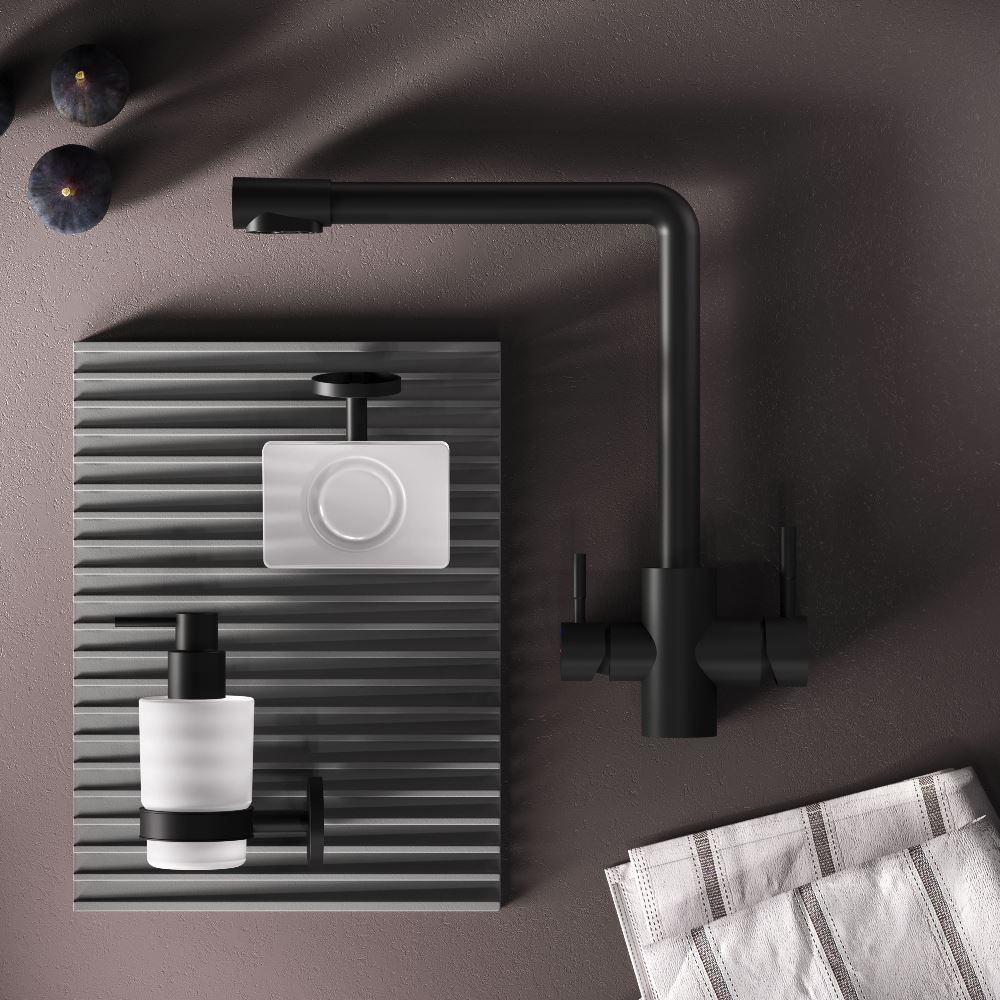 Эксклюзивное покрытие Everlast – вдвое превышает отраслевые стандарты по прочности и износостойкости. Черный матовый цвет сделает этот смеситель главным акцентом в любом интерьере. L-образная архитектура смесителя идеально подойдет для использования с мойкой любого размера и значительно упростит такие задачи, как наполнение больших емкостей. Черный матовый цвет сделает этот смеситель главным акцентом в любом интерьере.