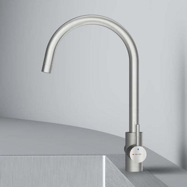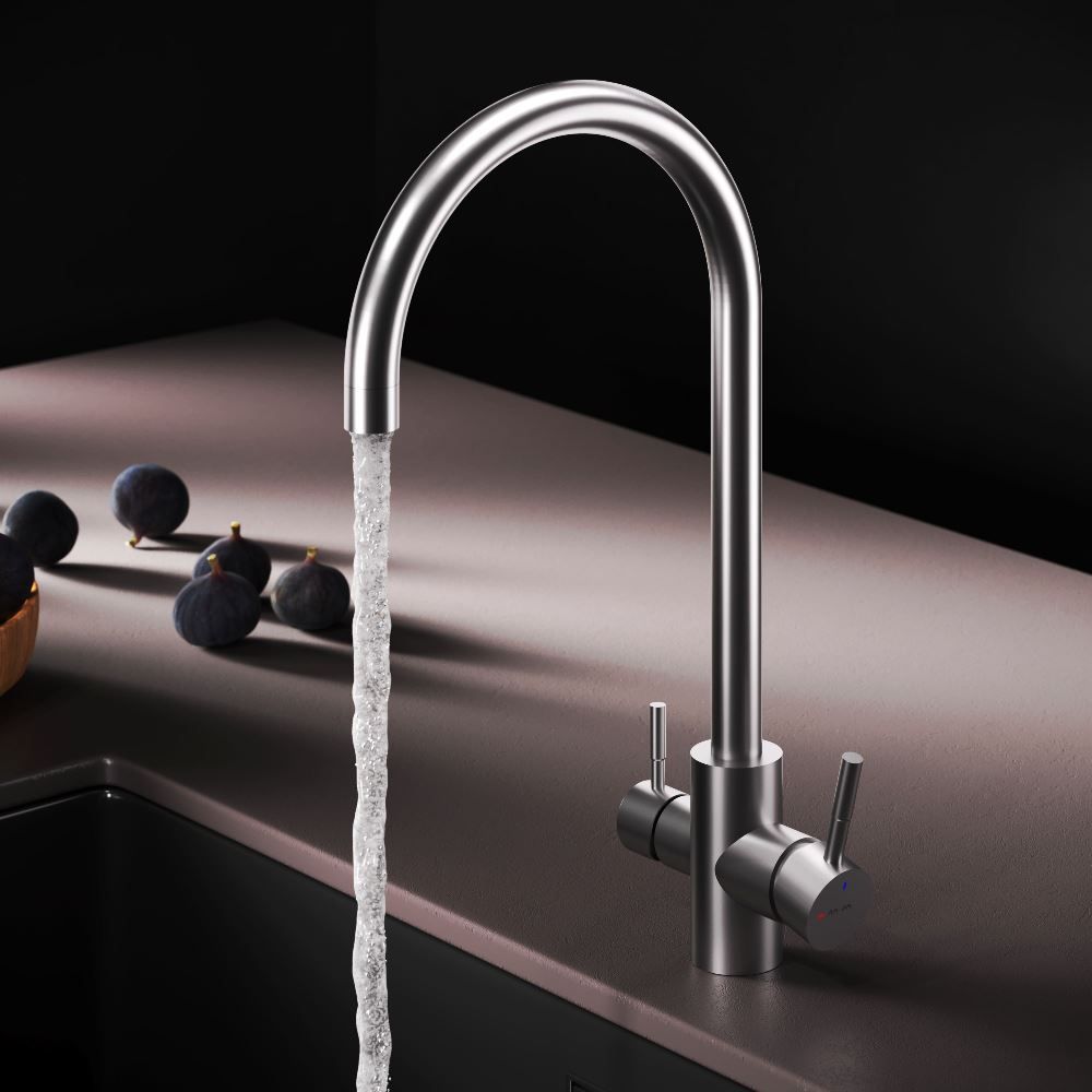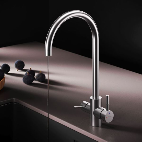 Смеситель оснащен встроенным каналом для питьевой воды. Для получения питьевой воды воспользуйтесь ручкой, расположенной с левой стороны корпуса, для получения обычной воды, просто управляйте смесителем привычным способом.