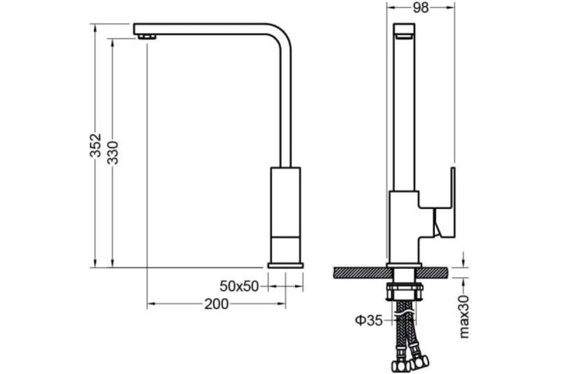 • Высота смесителя: