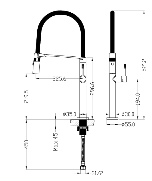 • Гибкий излив: