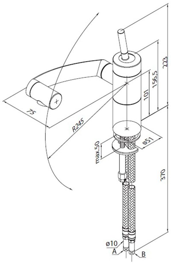 • Высота смесителя: