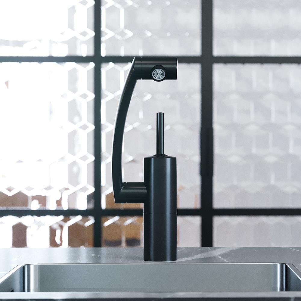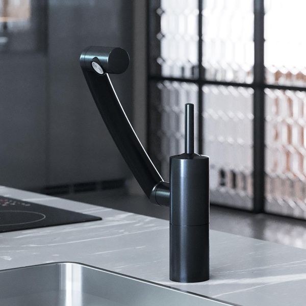 Инновационный смеситель серии Arc теперь в матовом черном исполнении. Абсолютная инновация от Damixa — аэратор смеситель поворачивается на все 360°, обеспечивая точное попадание струи в любое место раковины или мойки. Специальное антискользящее покрытие позволяет управлять углом струи легко, даже с мокрыми руками. Инженеры бренда создали невероятно функциональный эргономичный излив с удобной и плавной регулировкой по высоте. Теперь уборка и мытье становится удобной как никогда — ведь излив идеально подходит как для высокой, так и для низкой посуды. Никакого дискомфорта и брызг! Глубокий матовый цвет дополнен покрытием High Gloss, которое уберегает поверхность смесителя от мелких повреждений. Невероятная синергия! Вращение излива вокруг своей оси, в совокупности с подвижным аэратором и регулировкой высоты — это дает смесителю Arc право называться самым функциональным смесителем своего класса — ведь вы с легкостью можете направить поток воды в любое место раковины, а также даже помыть столешницу и место за мойкой. Смеситель Arc это настоящая свобода на кухне.