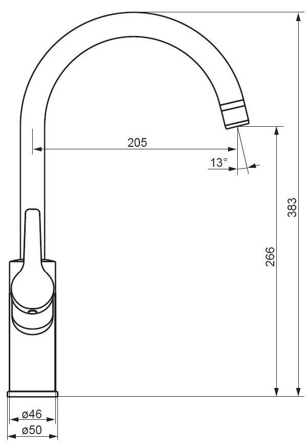 • Высота смесителя: