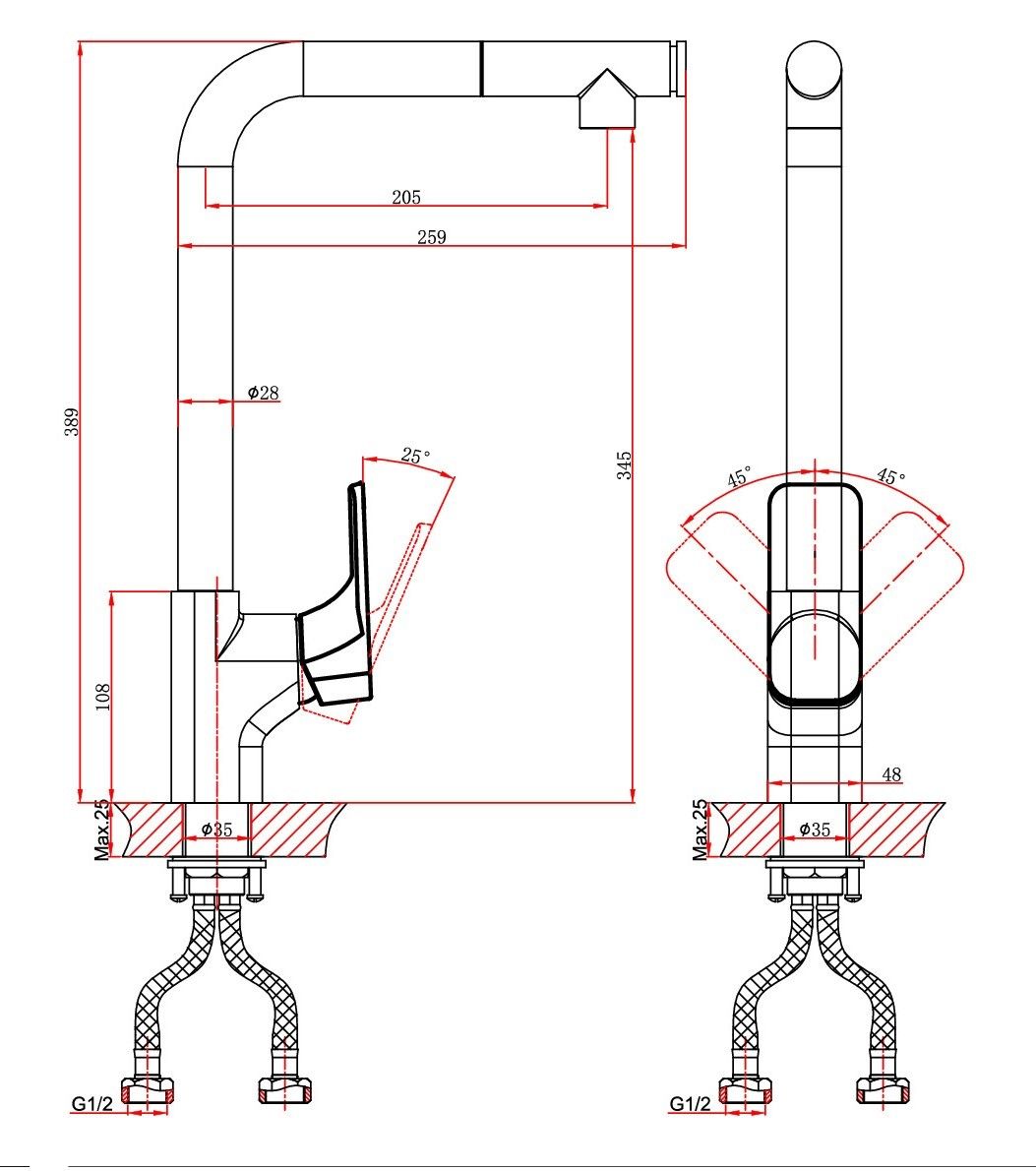 Строгие черты подчеркивают индивидуальность каждой кухни, выдвижная двухрежимная лейка добавляет функциональности. Ручка и излив правильно подобраны по размеру, для удобной повседневной эксплуатации на долгие годы.