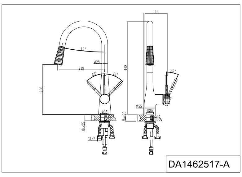 Высота смесителя:44