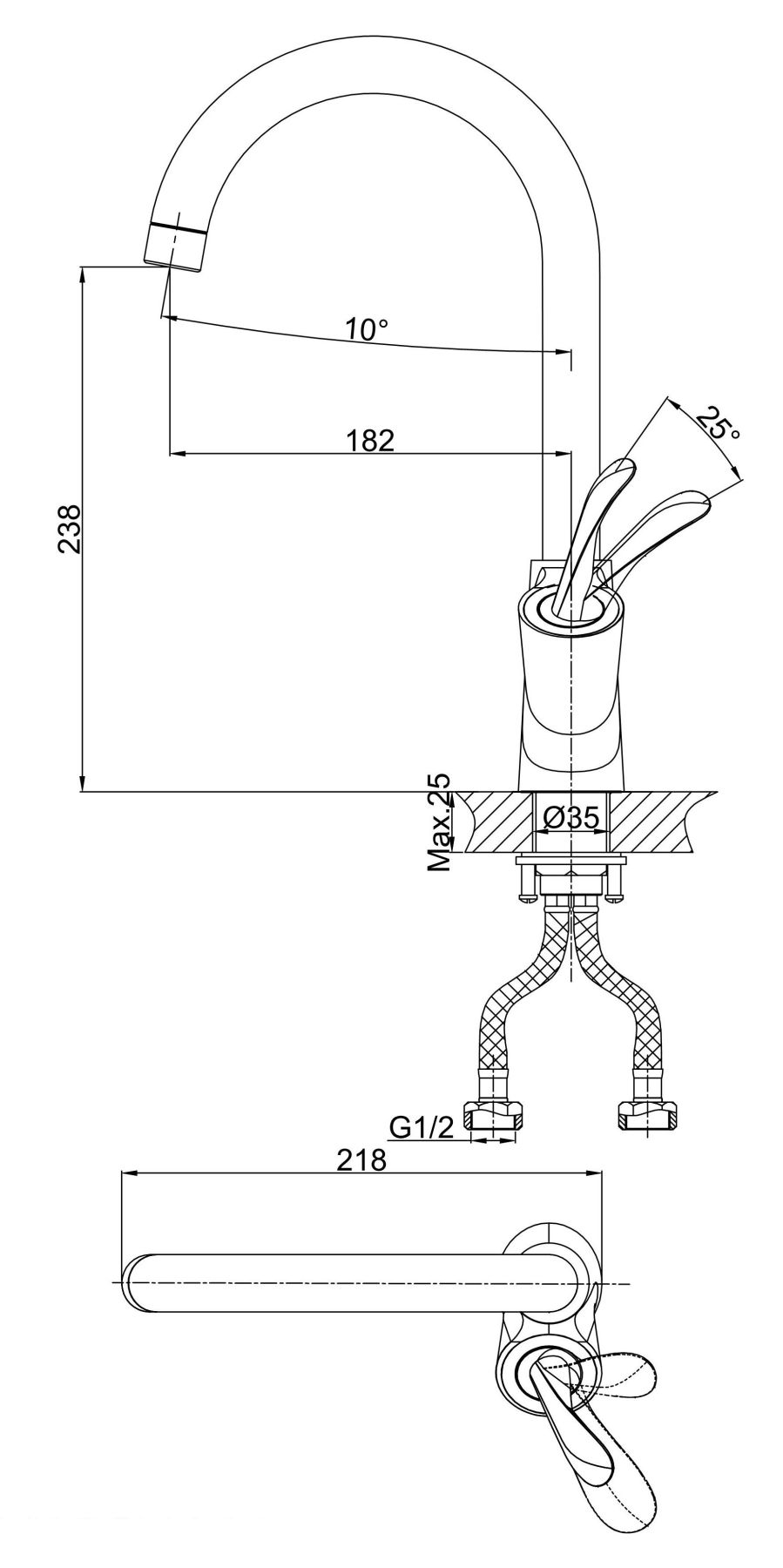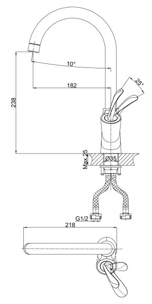 • Высота смесителя: