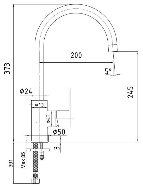 • Высота смесителя: