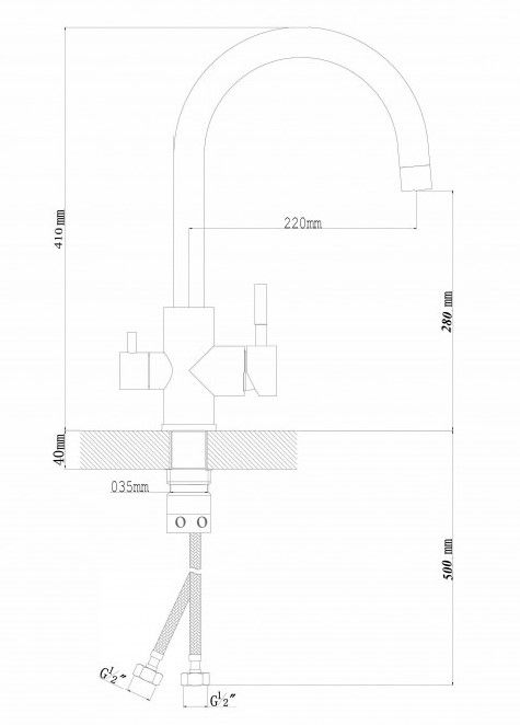 • Высота смесителя: