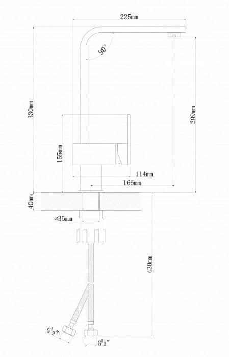 • Высота смесителя: