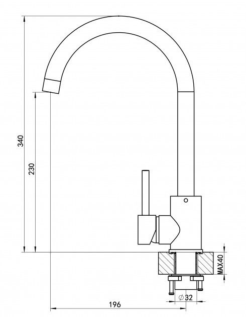 • Высота смесителя: