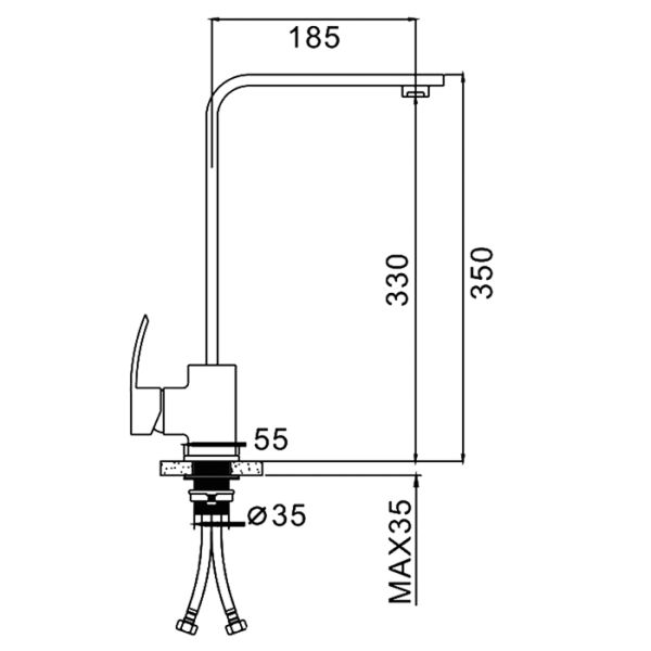 • Высота смесителя: