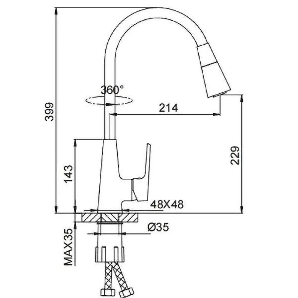 Излив: поворотный, гибкий.