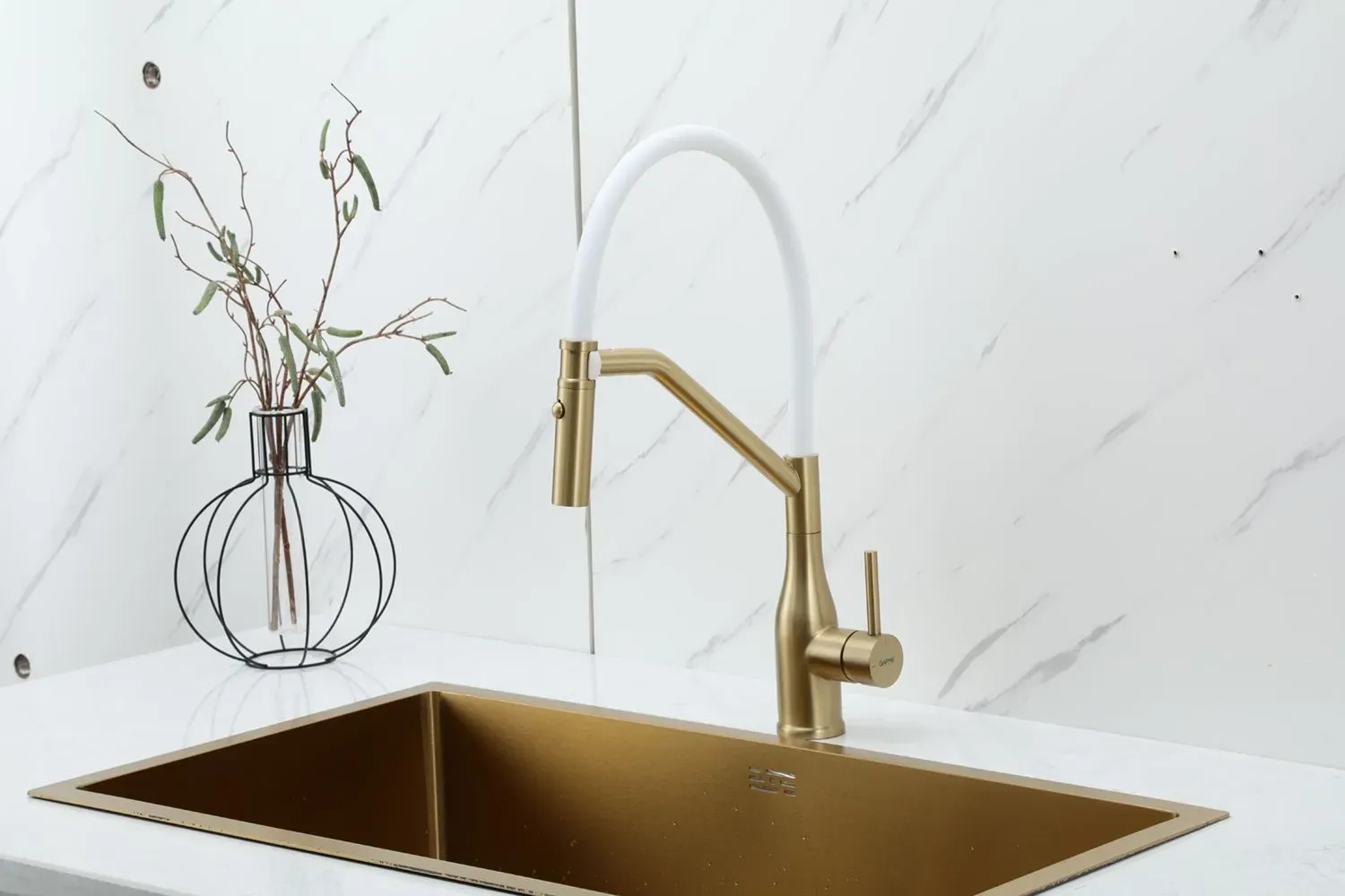Смеситель для кухни Gappo G4098-13 с гибким изливом золотой сатин
