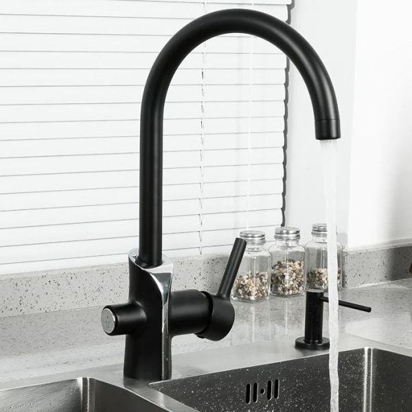 Смеситель для кухни Gappo G4303-6 со встроенным фильтром под питьевую воду чёрный/хром купить