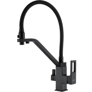 Смеситель для кухонной мойки Gappo G4317-6 с подключением фильтра питьевой воды - стильная и функциональная однорычажная модель в трендовом черном цвете, оснащена гибким изливом и двумя рычажками: компактный рычажок предназначен для подачи воды из-под фильтра, а второй рычаг отвечает за регулировку потока водопроводной воды. Имеет керамический картридж 35 мм. Цвет - черный.