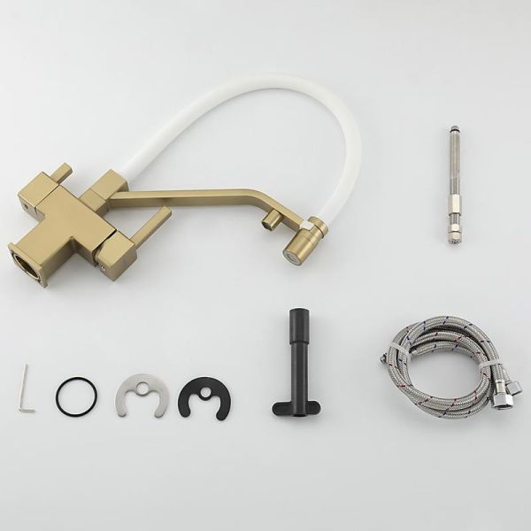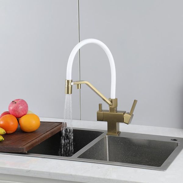 Смеситель для кухни Gappo G4395-63 с подключением фильтра питьевой воды и гибким изливом золото/белый купить