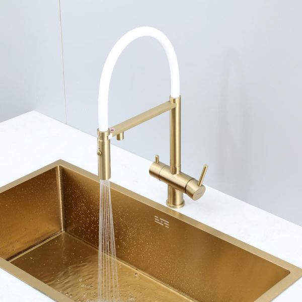 Смеситель для кухни Gappo G4397-83 с подключением фильтра питьевой воды и гибким изливом золото/белый