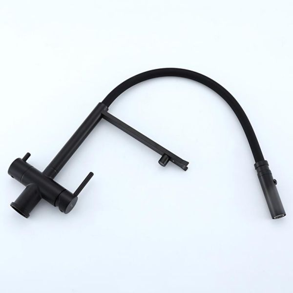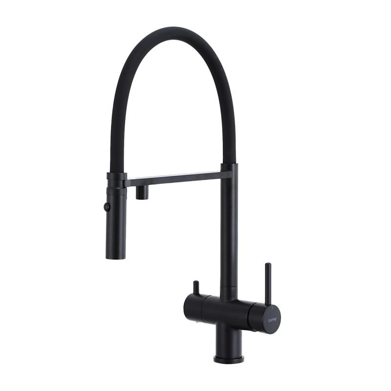 Смеситель для кухни Gappo G4397-86 с подключением фильтра питьевой воды и гибким изливом чёрный