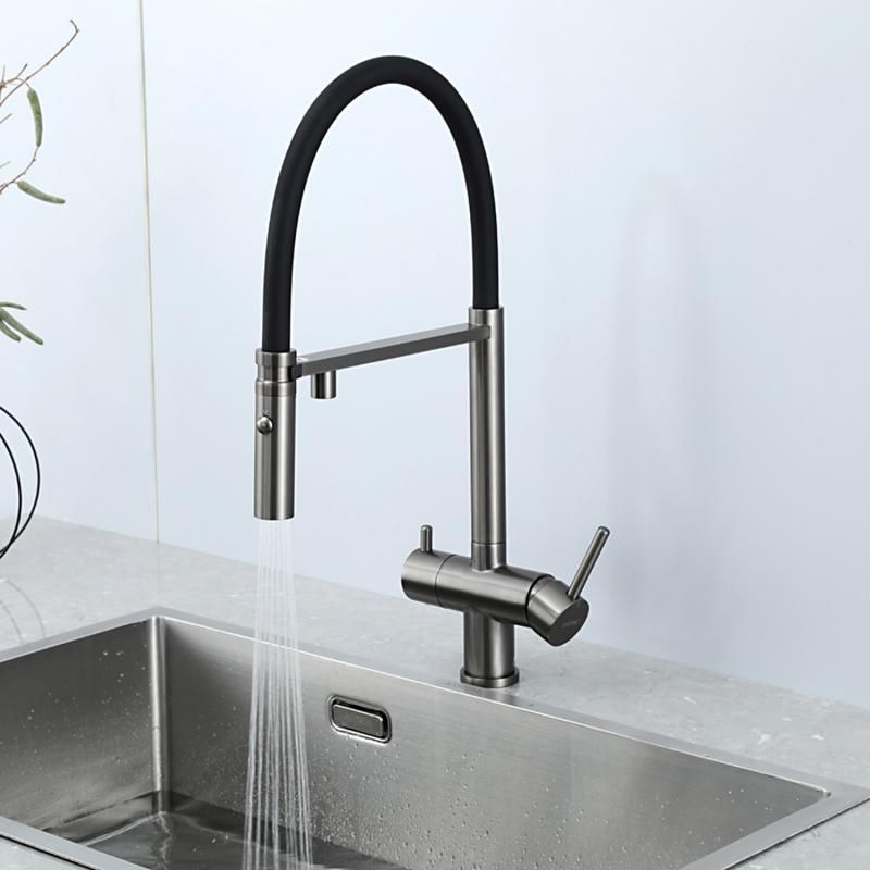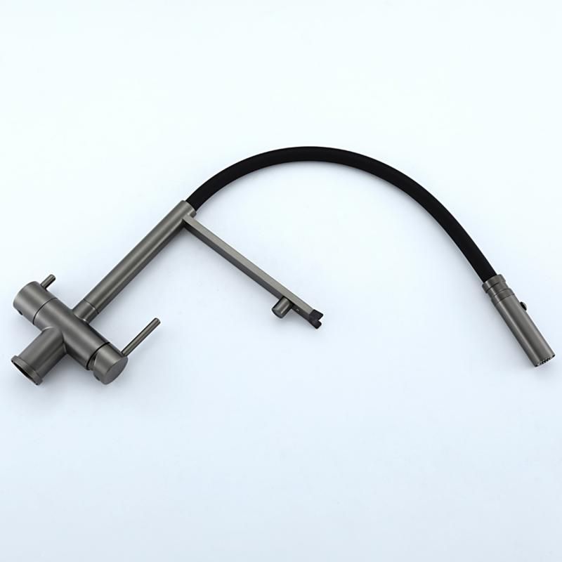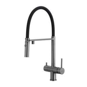 Смеситель для кухни Gappo G4397-89 с подключением фильтра питьевой воды и гибким изливом оружейная сталь/чёрный купить