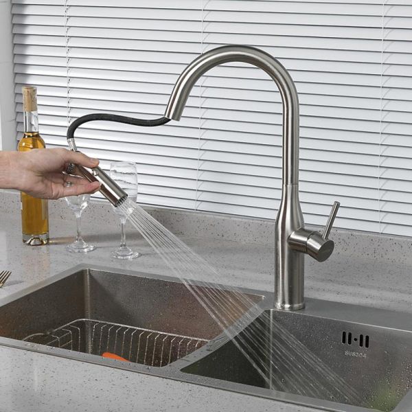 Смеситель для кухонной мойки Gappo G4398-45 с выдвижным изливом - однорычажный смеситель из нерж... Подробнее