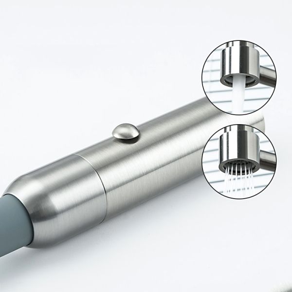 Смеситель для кухонной мойки Gappo G4398-55 с гибким изливом - однорычажный смеситель из нержавеющей стали с отделкой "сатин". Смеситель оснащен переключателем режимов струя / душ. Излив фиксируется в металлическом держателе.