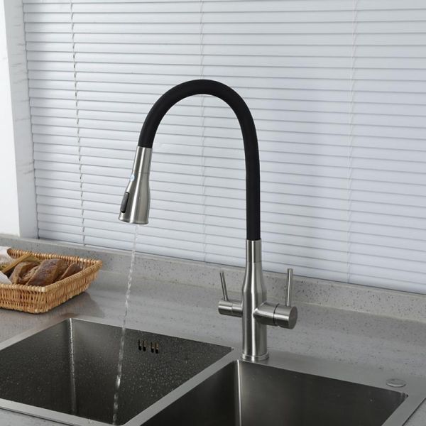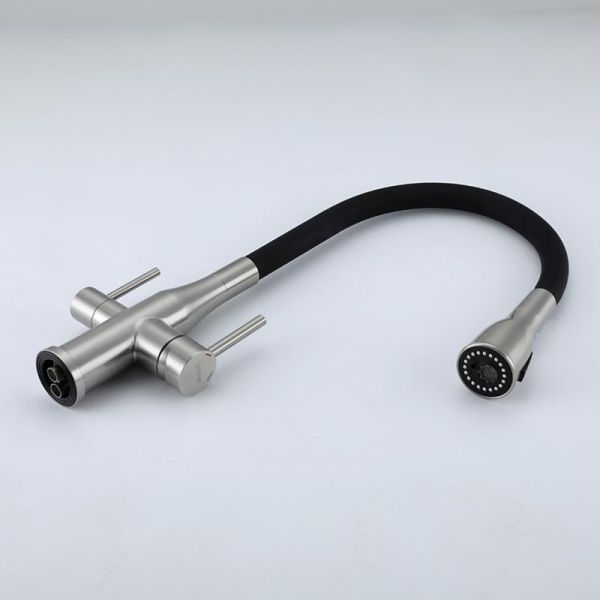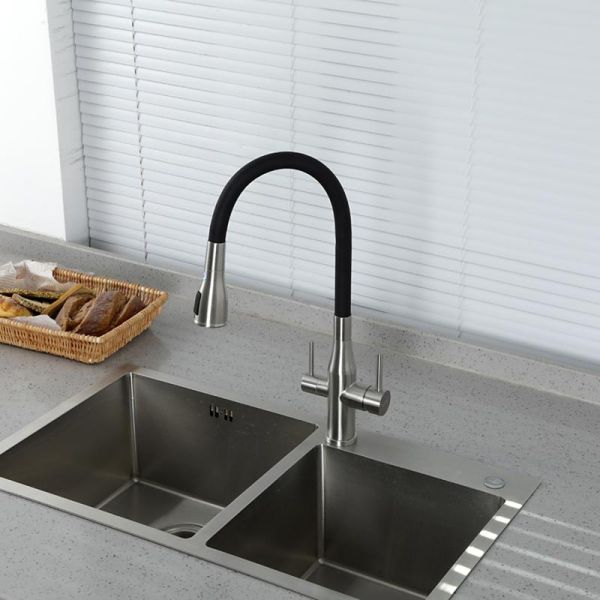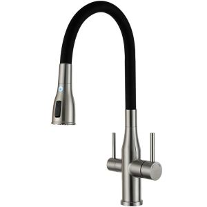 Смеситель для кухни Gappo G4399-65 с гибким изливом и подключением фильтра питьевой воды сатин
