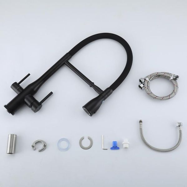 Смеситель для кухни Gappo G4399-76 с гибким изливом и подключением фильтра питьевой воды чёрный