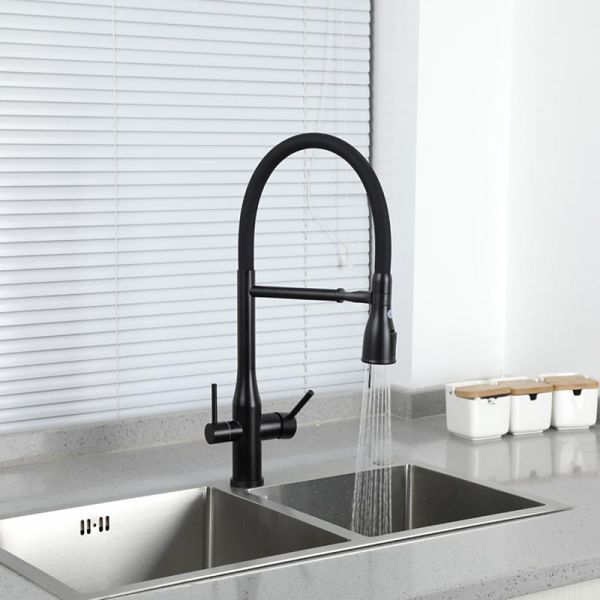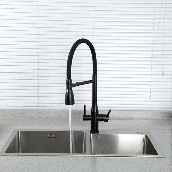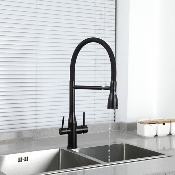 Смеситель для кухни Gappo G4399-76 с гибким изливом и подключением фильтра питьевой воды чёрный купить