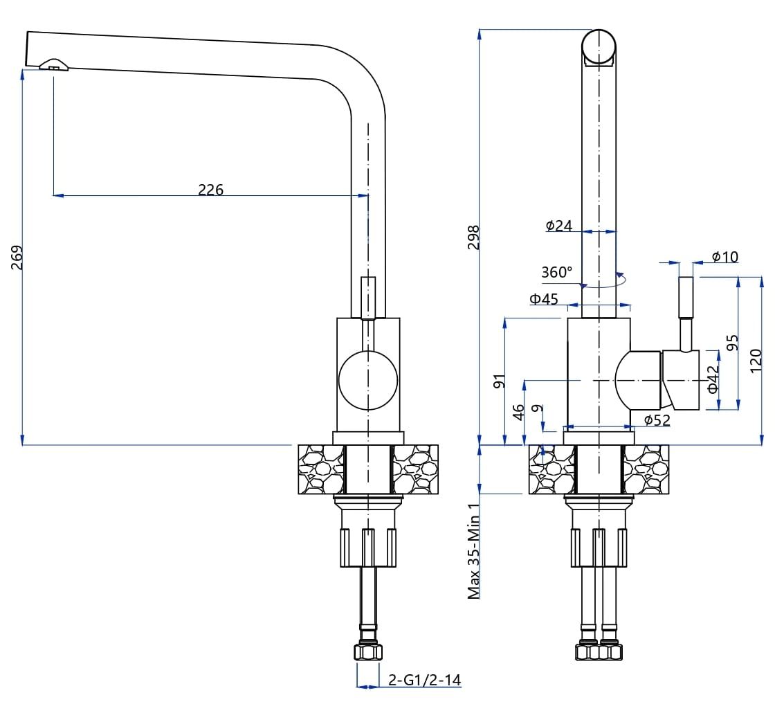 Высота смесителя:29.8