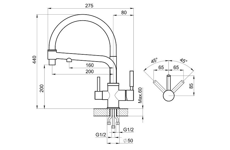 Высота смесителя:44