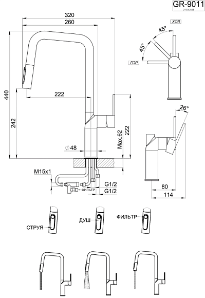Выдвижной излив:да