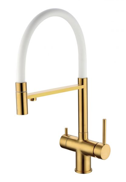 Смеситель для кухни Grocenberg GB4099 с гибким изливом золотой брашированный