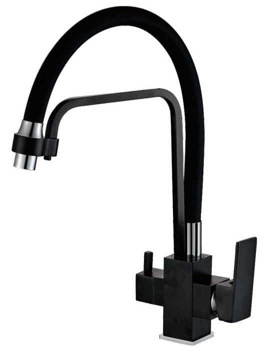 Смеситель для кухни Haiba HB76857 с подключением фильтра питьевой воды чёрный матовый купить