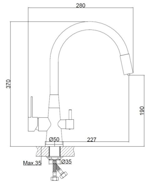 • Высота смесителя:
