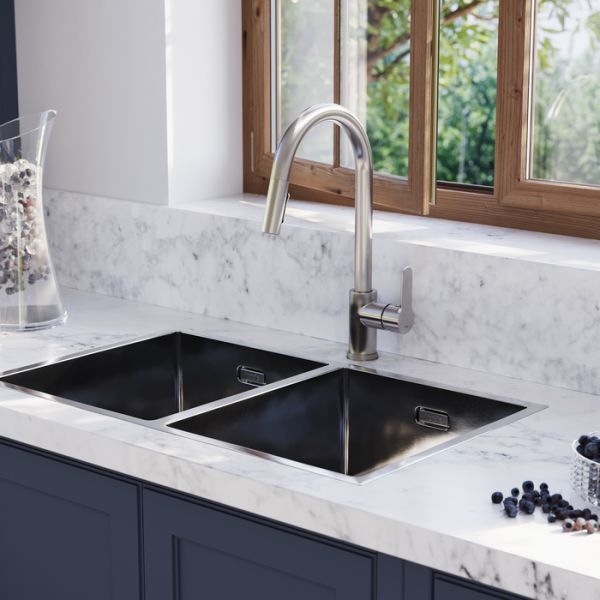 Смеситель Cuba – улучшенный функционал и хорошо узнаваемый дизайн. Излив смесителя выдвигается на 45 см, что позволяет направлять струю воды в нужную точку мойки для поддержания чистоты.