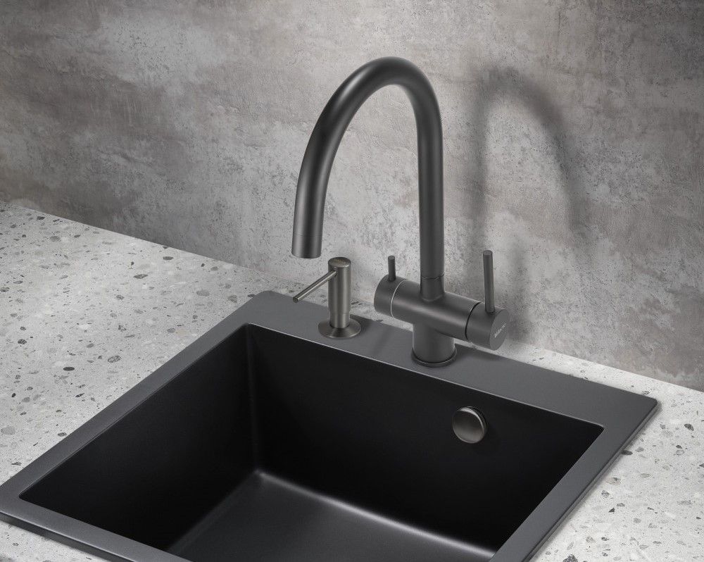 Смеситель для кухни Milacio Ultra MCU.554.TB под фильтр с краном для питьевой воды Total Black