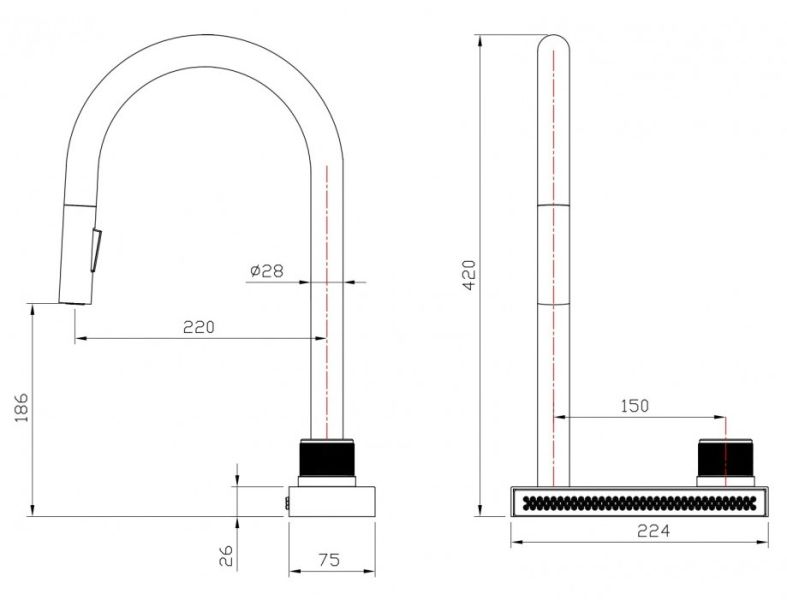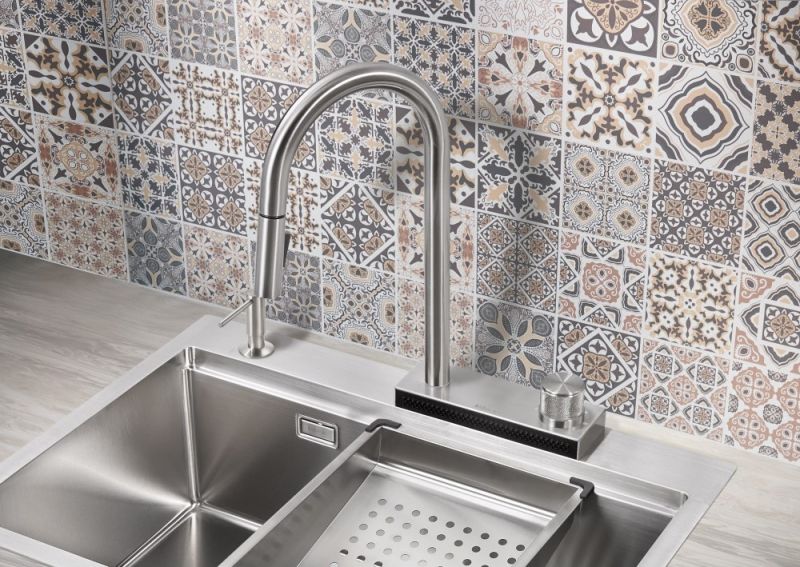 Смеситель для кухни Milacio Ultra MCU.556.SS с вытяжной лейкой и каскадным душем нержавеющая сталь