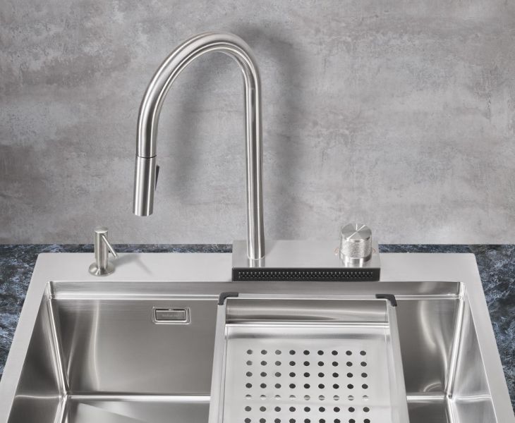 Смеситель для кухни с вытяжной лейкой и каскадным душем Milacio Ultra ( MCU.556.SS ) сталь нержавеющая