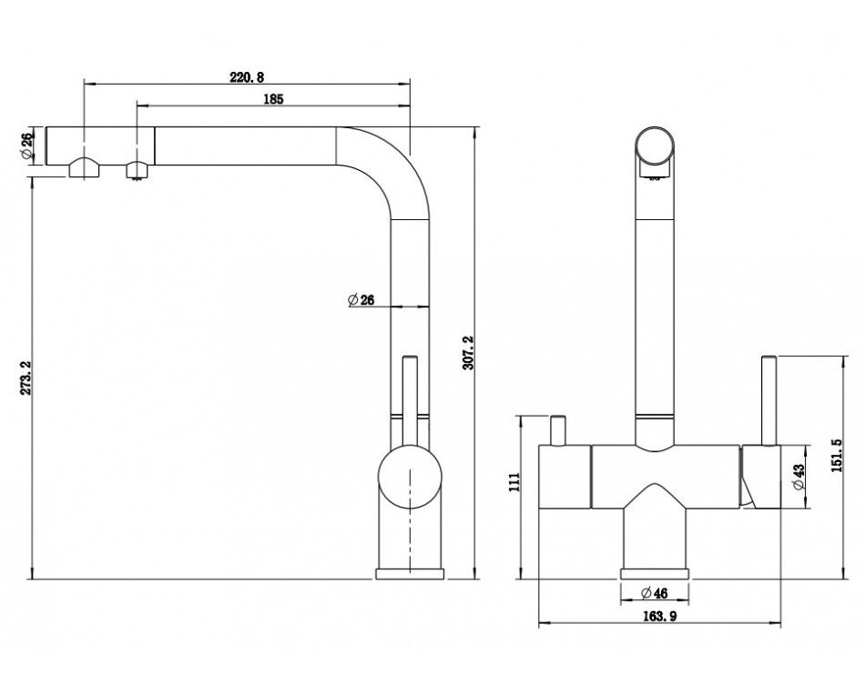 2. Возможность подключения фильтра обеспечивает легкий доступ к чистой питьевой воде и избавляет от необходимости установки дополнительного крана, сохраняя цельность и эстетику пространства. Для подачи фильтрованной воды предусмотрен отдельный рычаг регулировки.