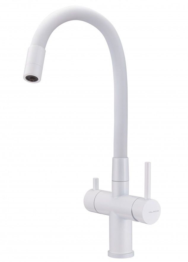 Смеситель для кухни Milacio Ultra MCU.560.WH под фильтр с краном для питьевой воды и гибким изливом белый