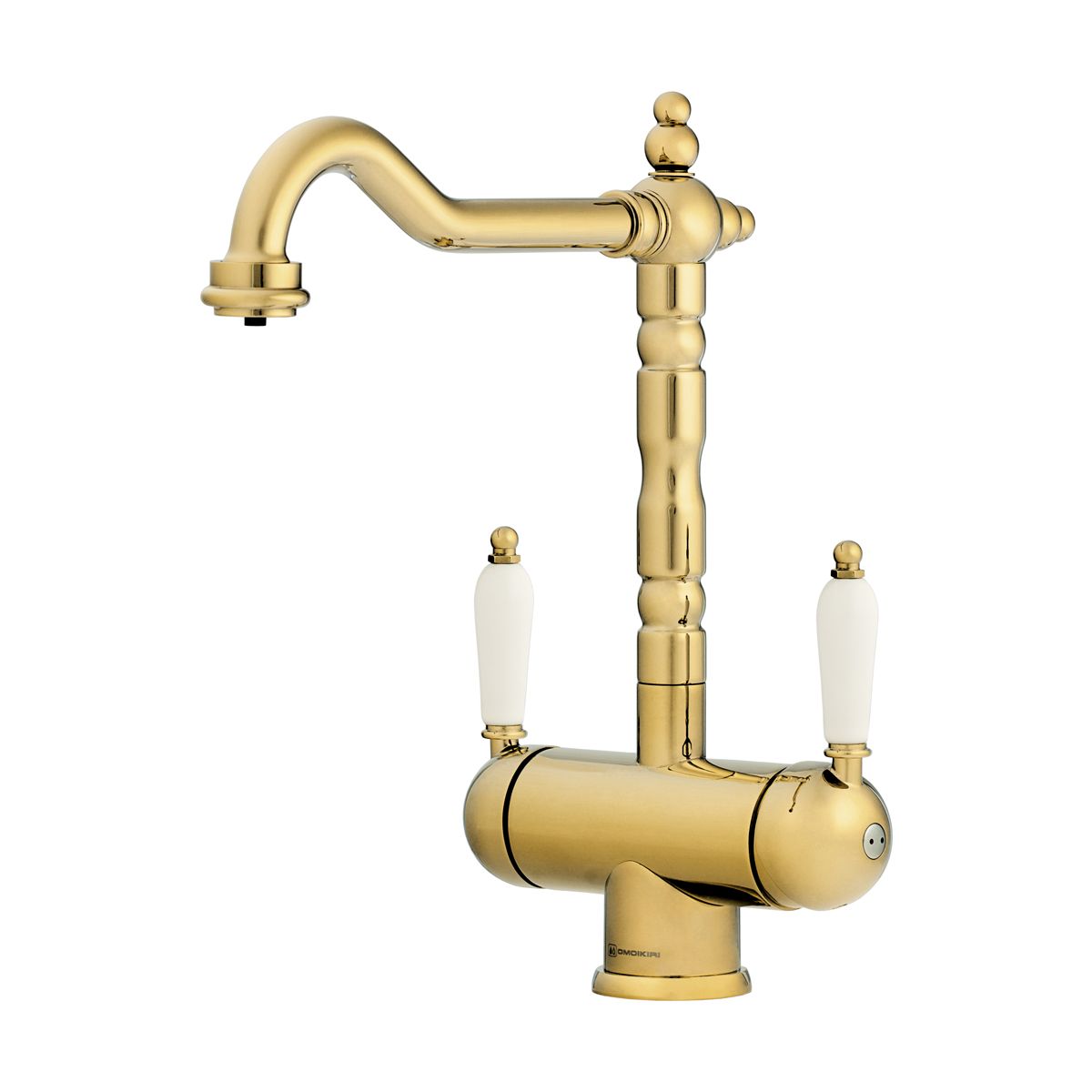 • Классический дизайн и удобство использования, благодаря высокому изливу; • Цвет: 005.Золото; • Технология PURE LIFE: Подключение фильтра для очистки воды. Фильтрованная вода подается по отдельной трубке и не смешивается с водопроводной водой; • Высококачественная латунь сохранит воду чистой и здоровой; • Аэратор произведен из пластика, благодаря чему на нем никогда не появится известкового налета и ржавчины; • Коробка внутри проложена поролоном, который обеспечит сохранность изделия при транспортировке; • Полный набор креплений, соединительных шлангов, подробная инструкция и гарантийный талон в комплекте;