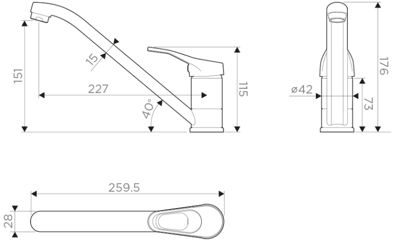 • Высота смесителя:
