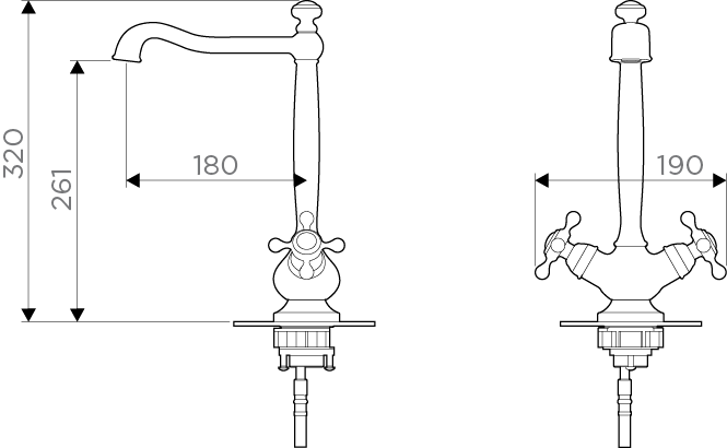 • Высота смесителя: