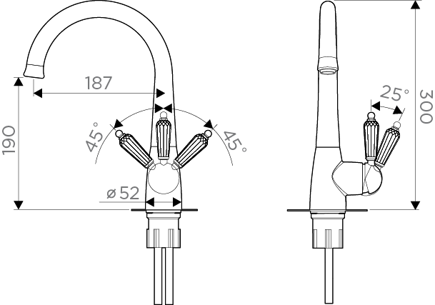 • Ручки смесителя украшены кристаллами Swarovski; • Цвет: 003. Хром • Высококачественная латунь сохранит воду чистой и здоровой; • Аэратор произведен из специального полимерного материала, благодаря чему на нем никогда не появится известкового налета и ржавчины; • Коробка внутри проложена поролоном, который обеспечит сохранность изделия при транспортировке; • Полный набор креплений, соединительных шлангов, подробная инструкция и гарантийный талон в комплекте
