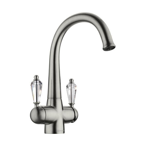 • Ручки смесителя украшены кристаллами Swarovski; • Цвет: 018.Античное Серебро • Технология PURE LIFE®: Подключение фильтра для очистки воды. Фильтрованная вода подается по отдельной трубке и не смешивается с водопроводной водой; • Высококачественная латунь сохранит воду чистой и здоровой; • Аэратор произведен из специального полимерного материала, благодаря чему на нем никогда не появится известкового налета и ржавчины; • Коробка внутри проложена поролоном, который обеспечит сохранность изделия при транспортировке; • Полный набор креплений, соединительных шлангов, подробная инструкция и гарантийный талон в комплекте